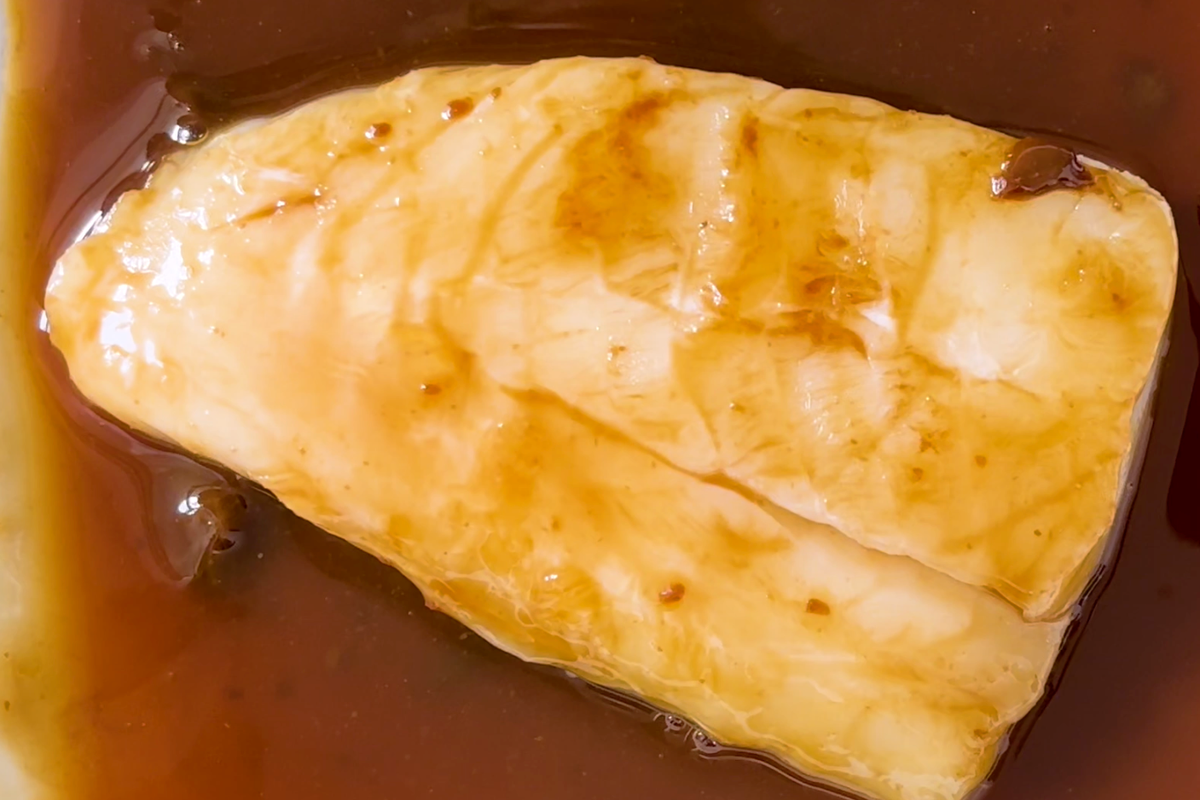 Once cooled, pat dry your fish fillets and lather in the marinade before refrigerating.
