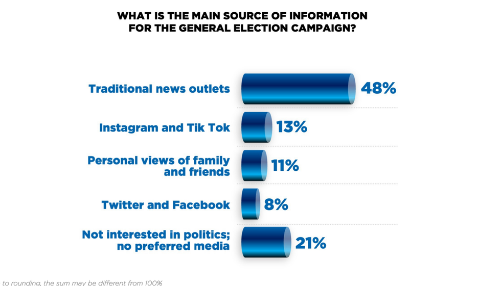 Meanwhile, 13 per cent said Instagram and TikTok were their main sources, 11 per cent said personal views of family and friends were their main sources.